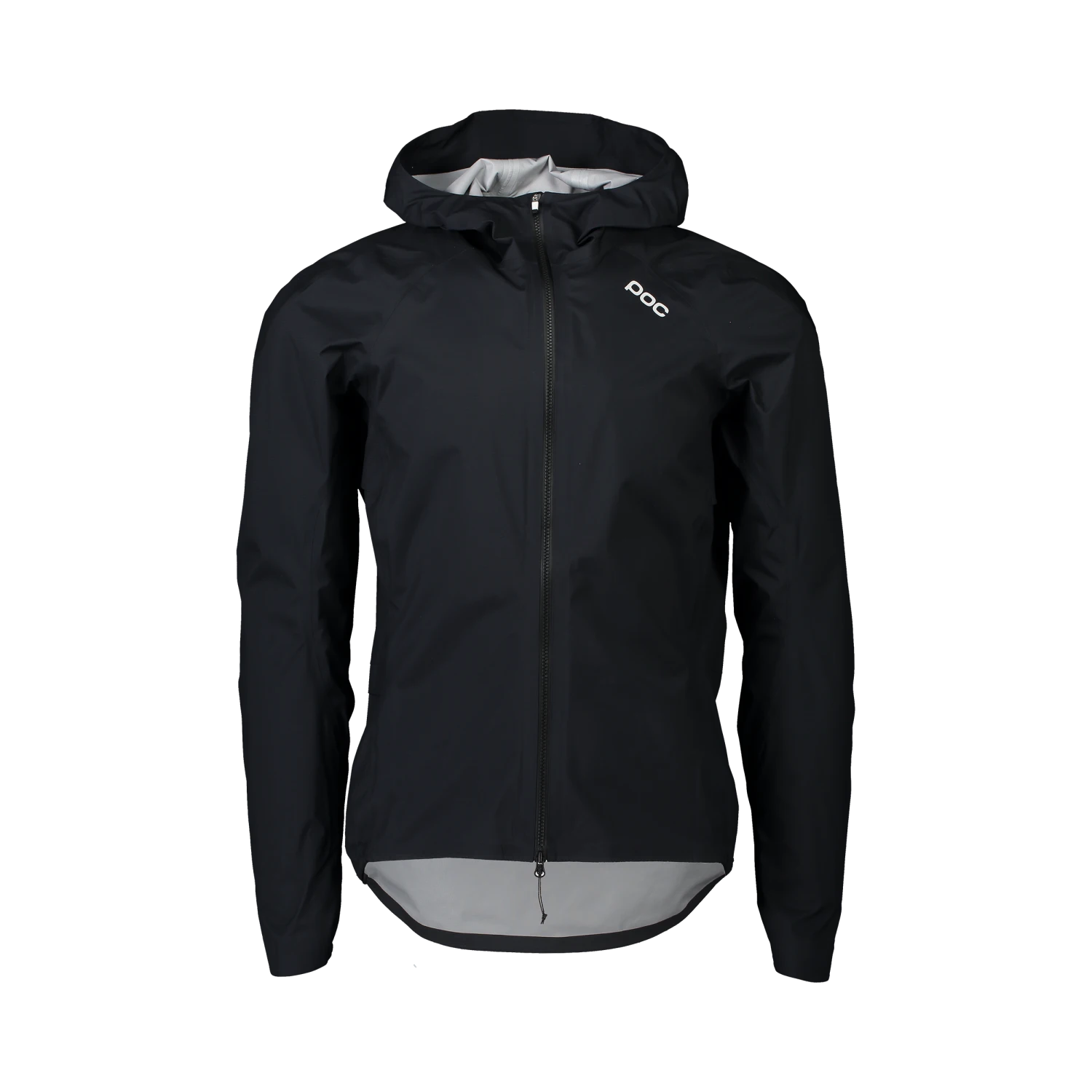 The hood can be adjusted using the drawcord, fits under a helmet and can be rolled up and secured in place while not in use.