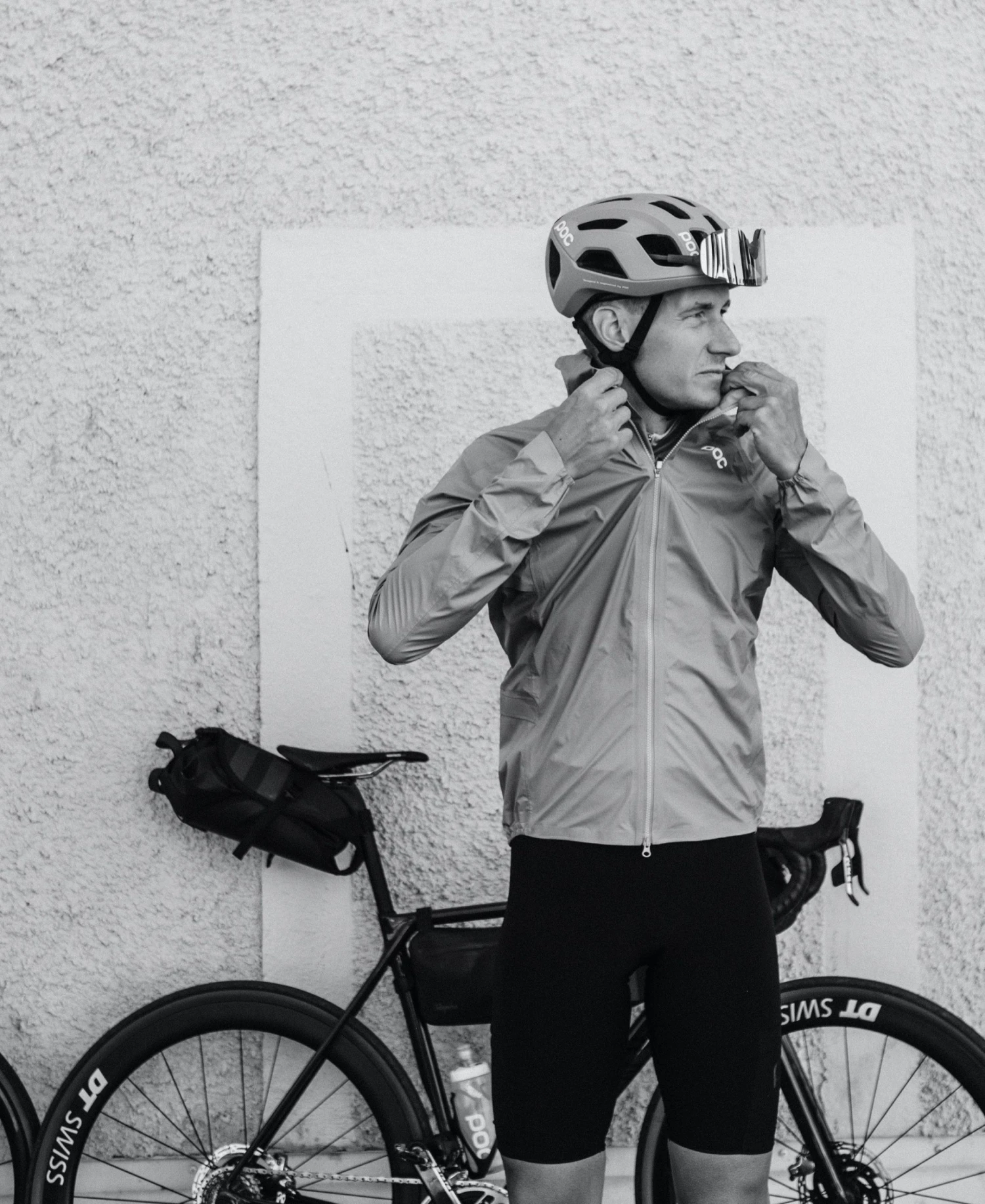The jacket can be packed into its own pocket and secured to a handlebar